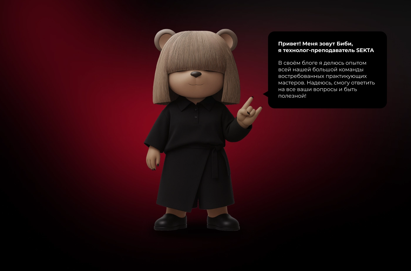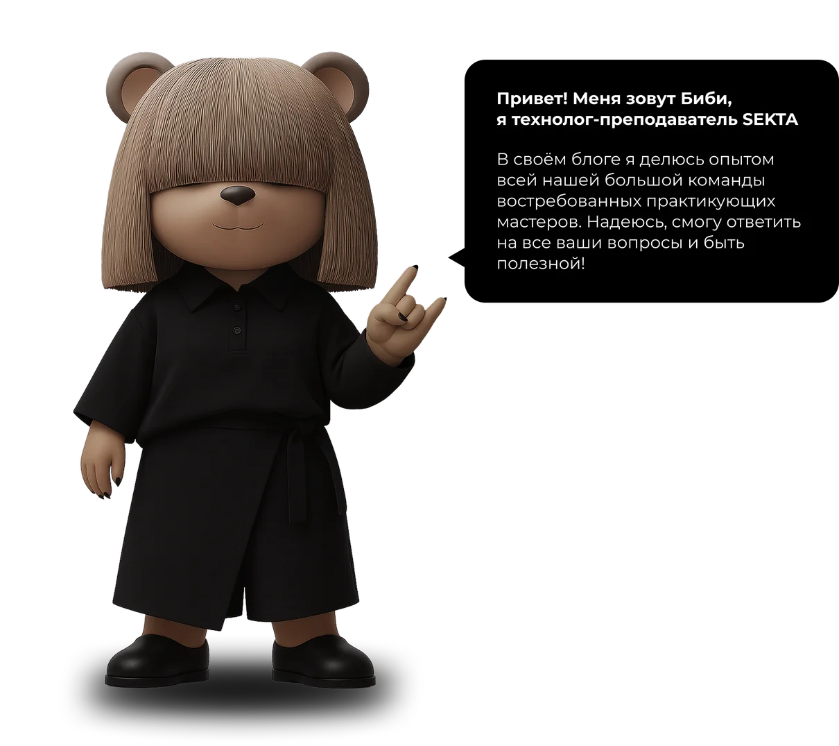Теперь, пройдя этот путь, я, Биби — технолог-преподаватель команды SEKTA, хочу помочь каждому мастеру поверить в себя. Я знаю, как тяжело бывает в начале пути, как трудно превзойти свои страхи и ограничивающие убеждения. Но я так же знаю, что успех приходит к тем, кто готов работать над собой и своим мастерством.