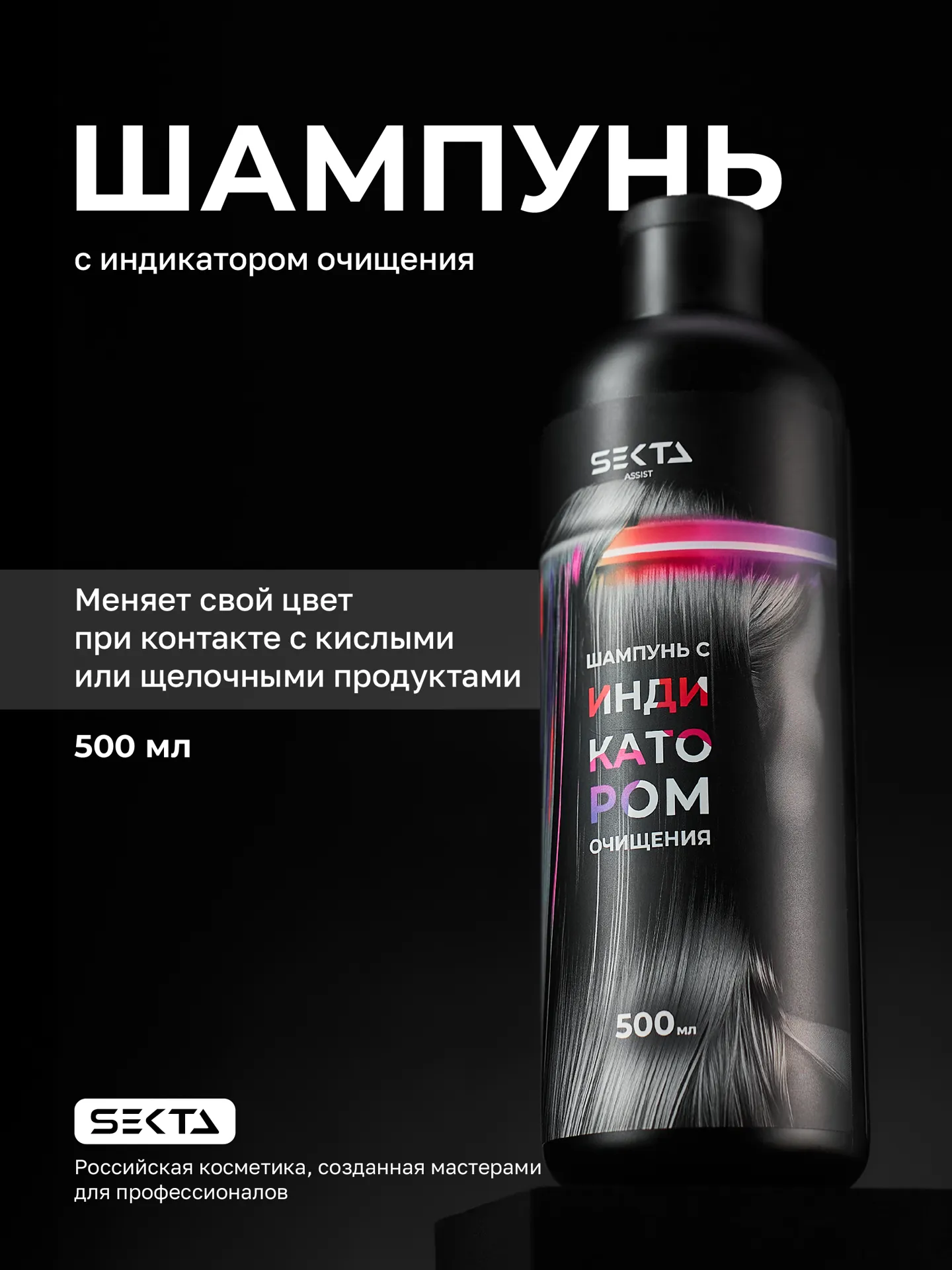Шампунь с индикатором очищения — меняет свой цвет при взаимодействии с осветляющими, обесцвечивающими продуктами, красителями и любыми щелочными составами. Этот шампунь оранжевого цвета (не оттеночный) помогает определить, где на волосах остались кислые или щелочные продукты, меняя цвет на красный, розовый или фиолетовый в зависимости от уровня pH. После смывания шампунь не оставляет следов на волосах и не изменяет их цвет.