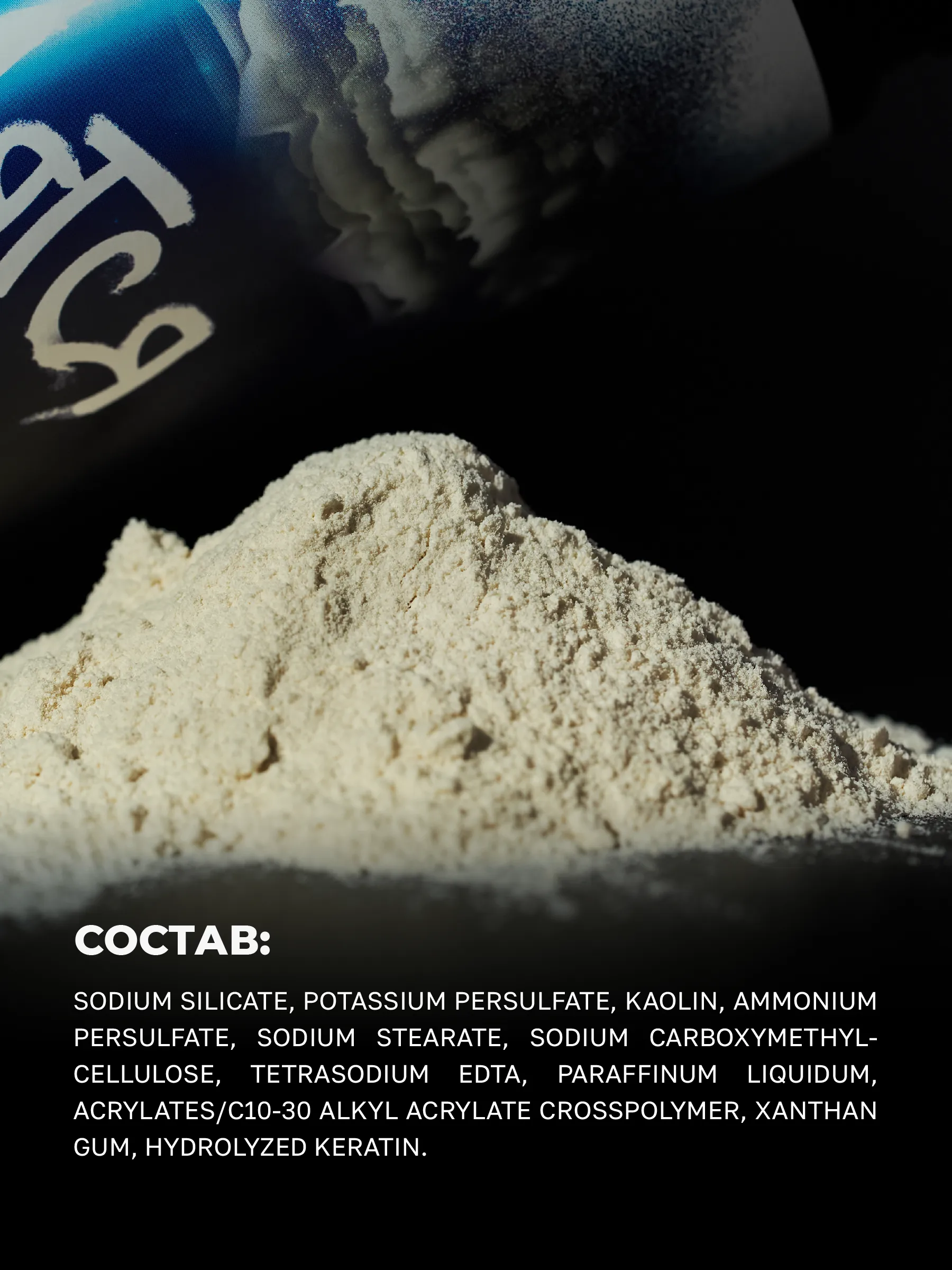 Данный осветляющий продукт является многофункциональным, так как его легко можно адаптировать под любой режим работы, метод и технику. В зависимости от выбранного процента окислителя и подобранной пропорции, вы сможете получить разный по агрессии и консистенции продукт, который способен решать любые задачи, связанные с осветлением/обесцвечиванием волос.