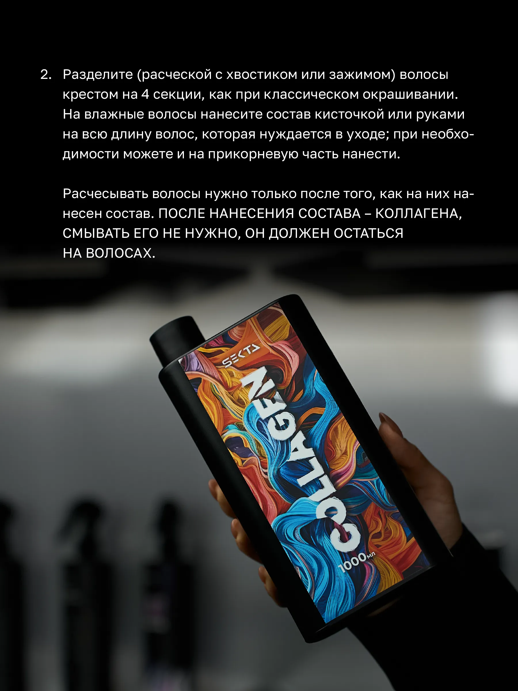 После нанесения состава — коллагена, смывать его не нужно, он должен остаться на волосах.